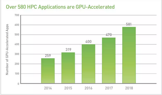 十幾年前,還不曾有加速應(yīng)用程序。而如今已有近600個(gè)應(yīng)用程序通過(guò)NVIDIA GPU實(shí)現(xiàn)了提速。