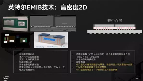 憑借領先的基礎技術,Intel在封裝技術上希望通過在一個封裝內連接多個芯片和小芯片,并實現高帶寬、低功耗的高密度互連,最終達成SoC單芯片的功能和性能。